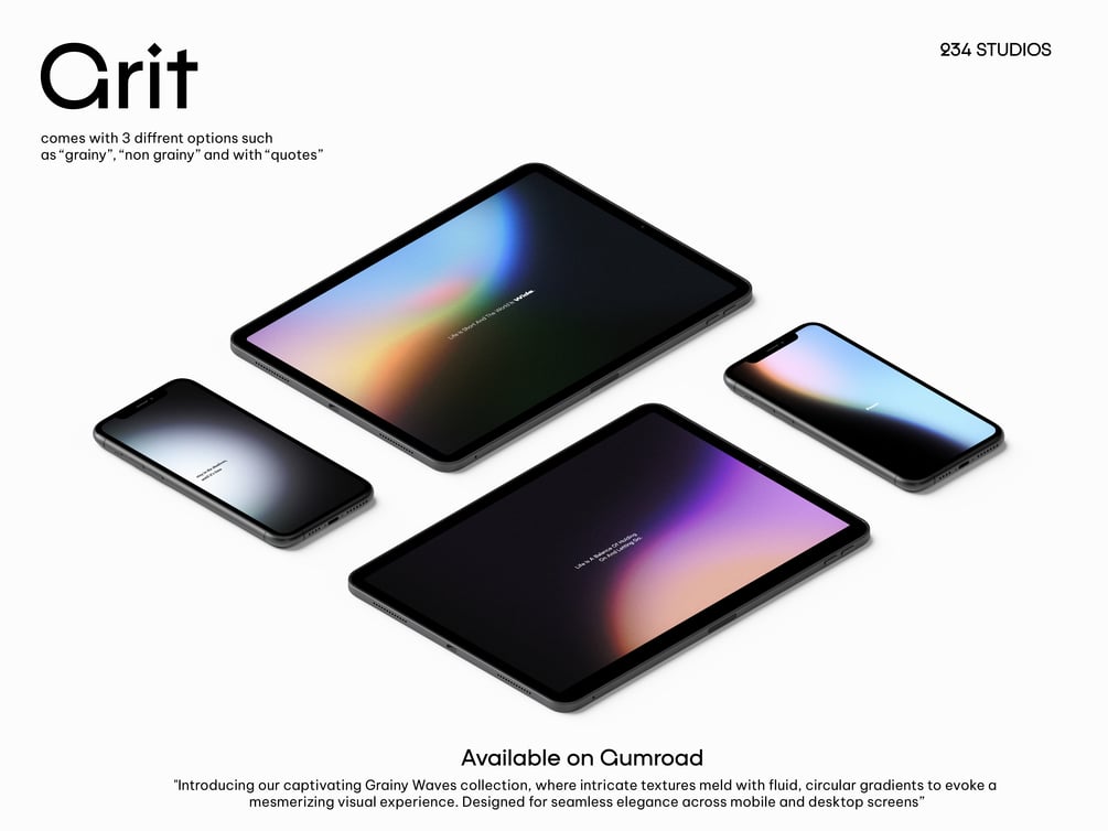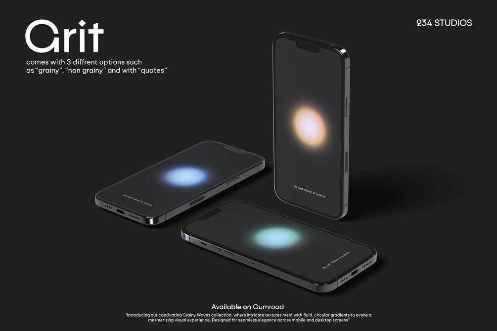 "Introducing our captivating Grainy Waves collection, where intricate textures meld with fluid, circular gradients to evoke a mesmerizing visual experience. Designed for seamless elegance across mobile and desktop screens, these wallpapers breathe life into your device with their unique interplay of grain and flow."